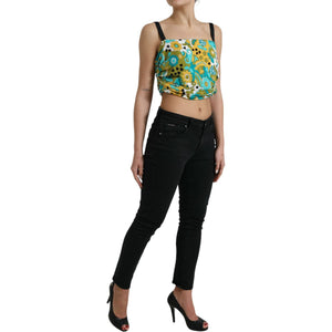 Dolce & Gabbana Multicolor Floral Sleeveless Cropped Top