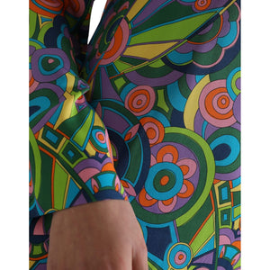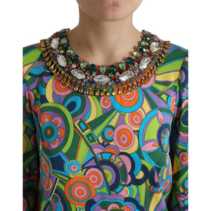 Dolce & Gabbana Multicolor Geometric Print Silk Crystals Midi Dress