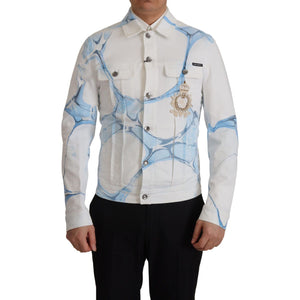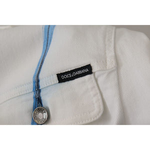 Dolce & Gabbana White Cotton Logo Embroidery Denim Jacket