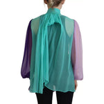 Dolce & Gabbana Multicolor Long Sleeves Ascot Collar Silk Top