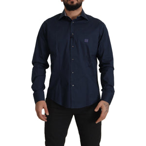 Roberto Cavalli Navy Blue Cotton Dress Formal Shirt