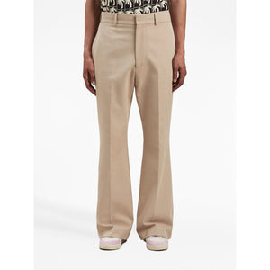 Retro Flare tailored trousers from PALM ANGELS featuring beige, cotton, tailored design, mid-rise, concealed front fastening, belt loops, two side slit pockets, flared, logo patch to the rear and two rear welt pockets. Flared trousers Size and Fit - This piece fits true to size. We recommend you get your regular size. Model is 1,84m / 6ft 1in wearing size 48 (IT)