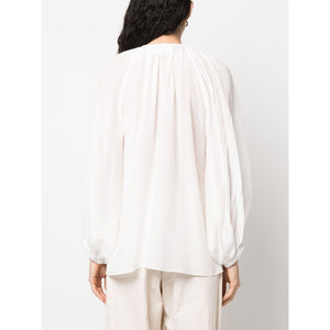 self-tie silk blouse from phaeonia featuring white, silk, self-tie fastening, keyhole neck, long raglan sleeves and elasticated cuffs. Anita long sleeves blouse Size and Fit - This piece fits true to size. We recommend you get your regular size. Model is 1,75m / 5ft 8in wearing size 40 (IT)