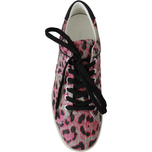 Dolce & Gabbana Pink Leopard Print Training Leather Flat Sneakers