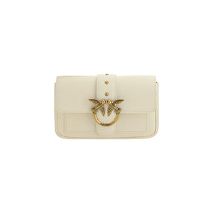 Calfskin Love One Shoulder Bag by Pinko, interlocking front fastening, adjustable and sliding chain shoulder strap, iconic Love Birds buckle embossed on the front, double internal compartment, internal zipped pocket, flat card pocket, iconic tone-on-tone embroidered brand monogram on the back.