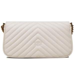 Elevate your style quotient with the PINKO matelassé shoulder bag – a true emblem of sophistication. Crafted from luxurious calfskin, this white stunner boasts an intricate bird detail that adds a touch of unique glamour. With a flap closure secured by magnetic buttons and a versatile leather and metal strap that’s both adjustable and removable, it epitomizes practical elegance. Whether worn crossbody or on the shoulder, the bag ensures your essentials are neatly organized with an internal zip pocket. Measuring 26×12.5×5 cm, it’s the perfect accessory for the fashion-forward individual.