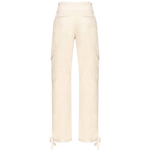 Indulge in the epitome of chic comfort with PINKO’s Coperto Trousers. Tailored to perfection, these ivory white pants boast a sophisticated six-pocket design, seamlessly blending functionality with fashion. Crafted from a luxurious blend of cotton and elastane, they ensure both a flattering fit and effortless movement. The unique ribbon drawstrings at the ankle and waist add a playful yet elegant touch to these versatile trousers. Elevate your wardrobe with this must-have piece from PINKO’s exquisite collection.