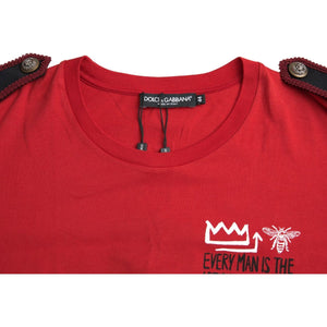 Dolce & Gabbana Red Cotton Graphic Print Crew Neck T-shirt