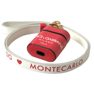 Dolce & Gabbana Red Leather Gold Tone Metal Logo Print Strap Airpods Case