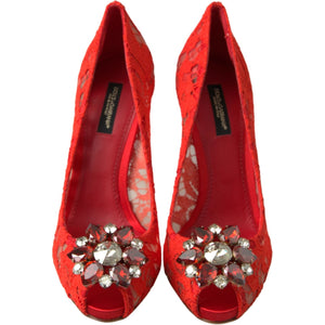 Dolce & Gabbana Red Taormina Lace Crystal Heels Pumps Shoes