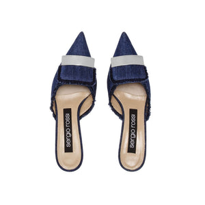 – Composition: 100% Canvas – Inner: Leather – Insole: Leather – Sole: Leather – Pointed toe – Fringe finish – Branded insole – Heel 5 cm – Open back – Slip-on design – Top logo metal hardware – Made in Italy – Gender: WOMEN –