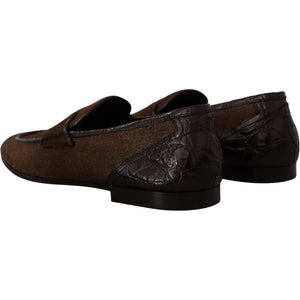 Dolce & Gabbana Shoes Dress Loafers Brown Leather Slip Shoes