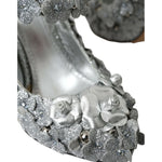Dolce & Gabbana Silver Floral Crystal Mary Jane Pumps Shoes