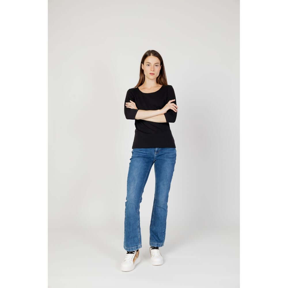 The Street One Style QR Pania 317588 women’s long-sleeved t-shirt is the perfect choice for those seeking both comfort and style. Crafted from a premium blend of 50% cotton and 50% modal, this top offers a soft touch and a naturally comfortable fit. Its clean design features a round neckline and a slightly fitted silhouette, making it suitable for both casual outfits and more refined looks. The three-quarter sleeves add a modern and practical touch, ideal for mid-season wear or layering under jackets and cardigans. A versatile garment, easy to match and perfect for any occasion.