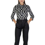The Street One EOS women’s sweater with scarf collar and jacquard pattern is the perfect choice for those seeking both style and comfort in knitwear. Made from a blend of 63% polyester, 34% viscose, and 3% elastane/lycra, it offers a comfortable fit and pleasant stretch that moves with your body. The geometric jacquard design adds a modern and sophisticated touch, while the cozy scarf collar provides both style and practicality. Long sleeves with turned-up cuffs and a slightly fitted cut flatter the silhouette, making this sweater ideal for both casual and more refined outfits. Perfect for the autumn-winter season, it is a versatile piece to wear at the office, during leisure time, or for special occasions.