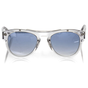 Step into the sun with unparalleled style wearing these Frankie Morello wayfarer sunglasses. Crafted with a chic transparent profile and alluring shaded blue lenses, they promise to add a dash of sophisticated cool to your ensemble. Perfect for the fashion-forward individual, these Italian-made shades bring an edge to any look.