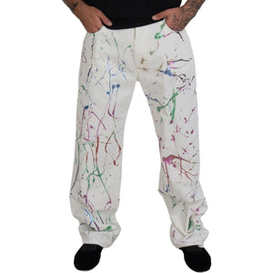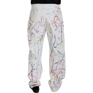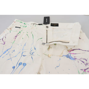 Dolce & Gabbana White Cotton Color Splash Print Denim Pants