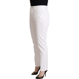 Dolce & Gabbana White Cotton Mid Waist Denim Tapered Jeans