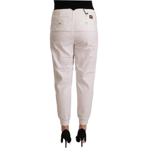 Met White Cotton Mid Waist Tapered Cropped Pants