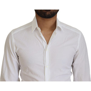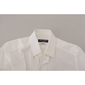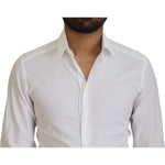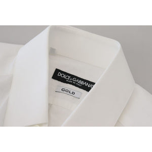 Dolce & Gabbana White Cotton Slim Fit Formal Dress GOLD Shirt