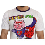 Dolce & Gabbana White Cotton Top Super Power Pig T-shirt
