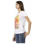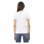 Elevate your everyday ensemble with the chic and minimalist appeal of a Trussardi Action masterpiece. This short sleeve T-shirt, crafted with a blend of high-quality cotton and viscose, boasts comfort and style. The pristine white hue acts as a canvas for the bold front print, making it a statement piece that exudes the brand’s signature bold and trendy vibe. Perfect for the fashion-forward individual seeking to add a touch of luxury to their casual wear.