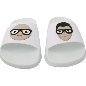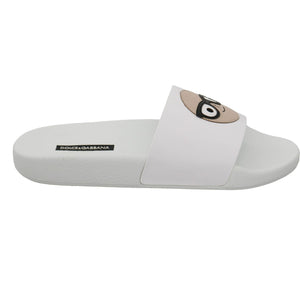 Dolce & Gabbana White Leather #dgfamily Slides Shoes Sandals