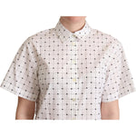 Dolce & Gabbana White Polka Dot Cotton Collared Shirt Top