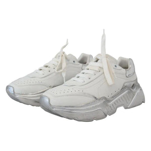 Dolce & Gabbana White Silver Leather Daymaster Women Sneakers Shoes