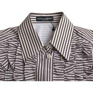 Dolce & Gabbana White Stripes Cotton Long Sleeves Ruffle Collar Top