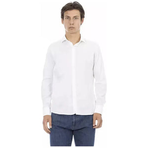 Elevate your wardrobe with the epitome of Italian sophistication – the Baldinini Trend Slim Fit Shirt. Crafted meticulously from premium cotton, this crisp white shirt exudes elegance with its sharp Italian collar and svelte front button closure. Created for the modern man who appreciates the fusion of luxury and trendsetting design. A must-have for a refined ensemble that speaks volumes of your impeccable style.