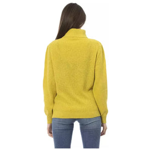 Elevate your wardrobe with the Baldinini Trend’s luxurious turtleneck sweater, a symphony of style and comfort. The exquisite blend of wool, viscose, cashmere, and nylon promises unparalleled softness and warmth. Its vibrant yellow hue is a statement in itself, while the ribbed collar, cuffs, and bottom add a touch of timeless sophistication. Distinguished by the chic Baldinini Trend monogram in metal, this piece is an unmistakable mark of fashion excellence.